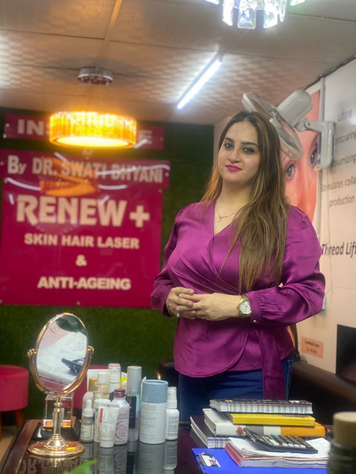 Renew+ Skin Hair Laser Clinic is an extraordinary chain of dermatologic and holistic wellness clinics driven by Dr.  Swati Dhyani’s mission to effect a profound transformation in people’s lives by beautifying and enriching their overall well-being.